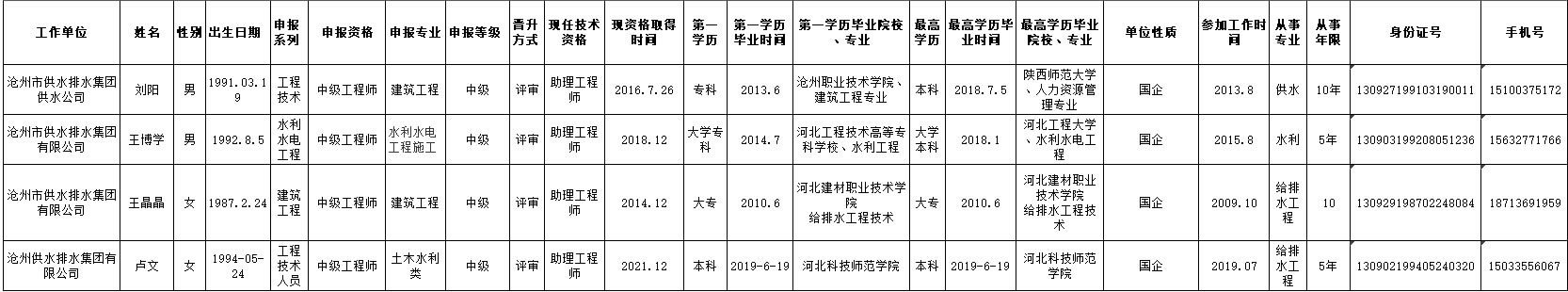 2021年供排水集團(tuán)申報(bào)中級(jí)職稱人員登記表
